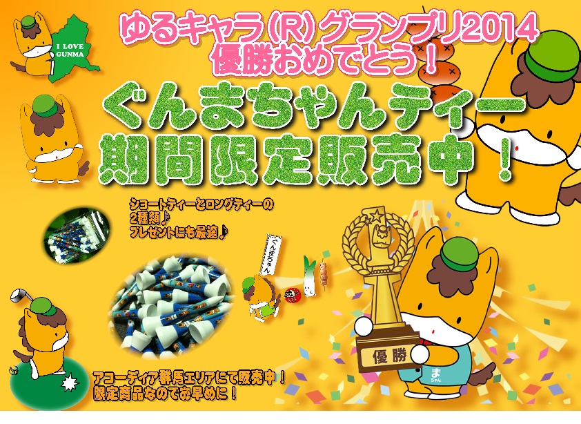 昨年のゆるキャラグランプリ2014で第1位を獲得した、群馬県の大スター「ぐんまちゃん」のイラストがプリントされた「ぐんまちゃんティー」が販売開始です!