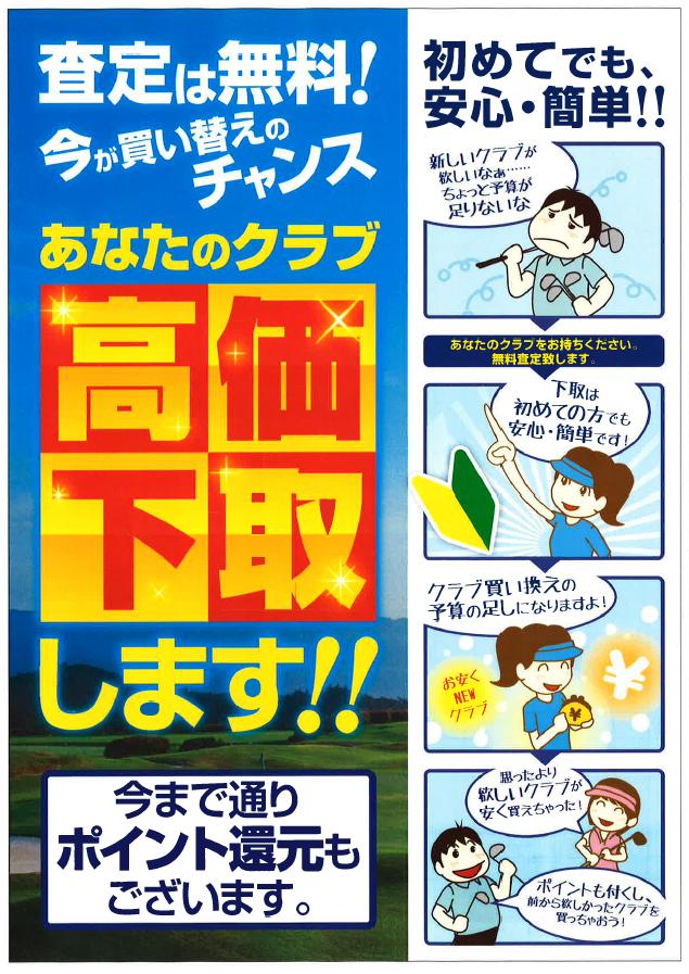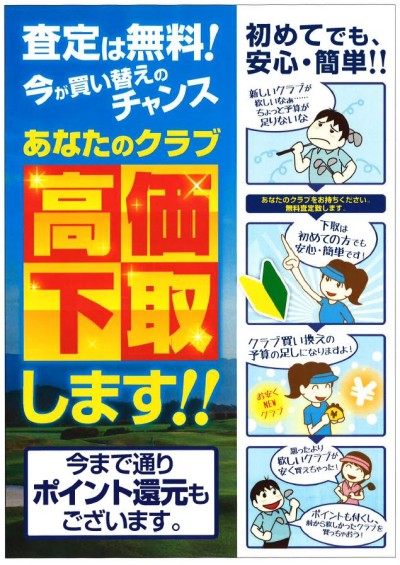 ※現金買取ではございませんので、プロショップ内新品ゴルフクラブをご購入されるお客様に限らせて頂きます。