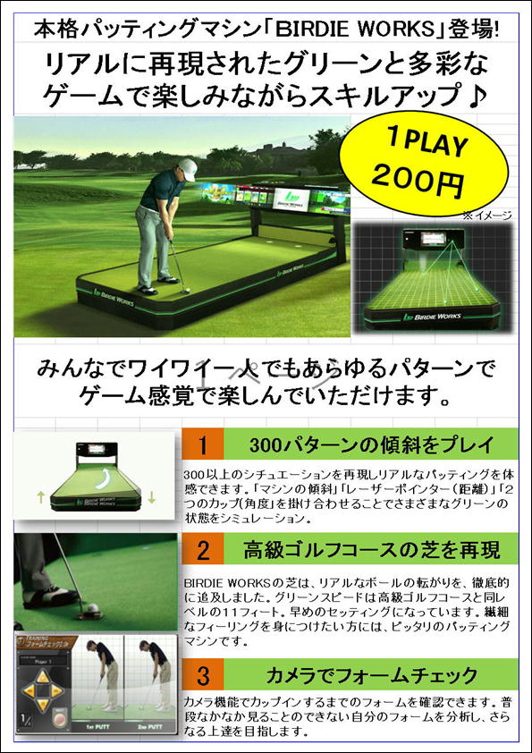 本格パッティングマシン"BIRDIE WORKS"(バーディーワークス)を設置致しました。