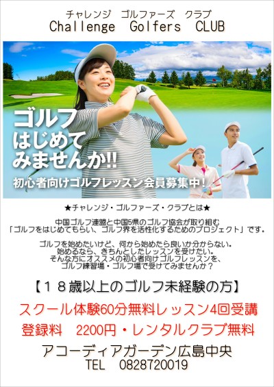 ☆受講料無料!! ☆練習ボール代無料!! ☆クラブレンタル代無料!!