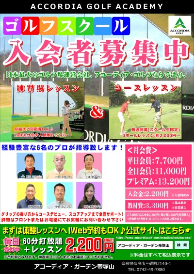 奈良市・生駒・学園前でゴルフスクールに通うならアコーディア・ガーデン帝塚山へ。