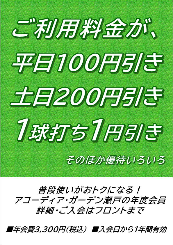 入会申込みはお気軽に練習場フロントまでお越し下さい。