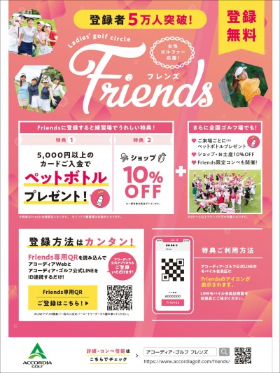アコーディア・ゴルフのレディスゴルフサークルFriendsに登録して頂くとAG三島でうれしい特典!