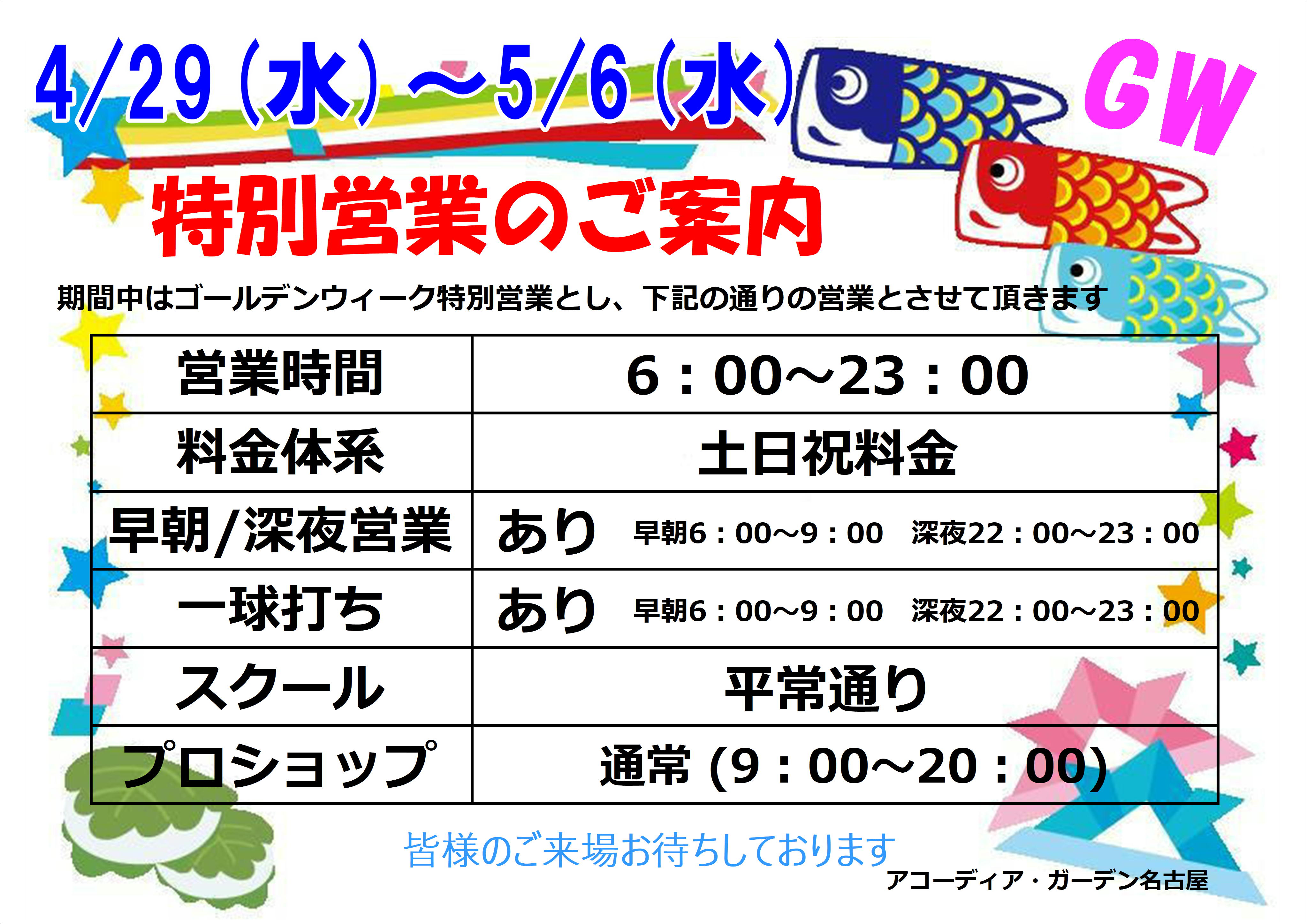 一球打ち あり(早朝6:00~9:00 深夜22:00~23:00)