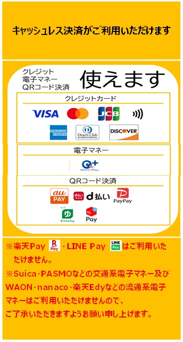 Suica・PASMOなどの交通系電子マネーはご利用いただけません。
