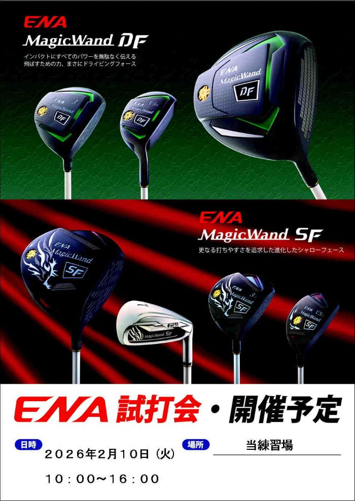 2月10日(火) 10時から16時まで、ENAの試打会を実施します。