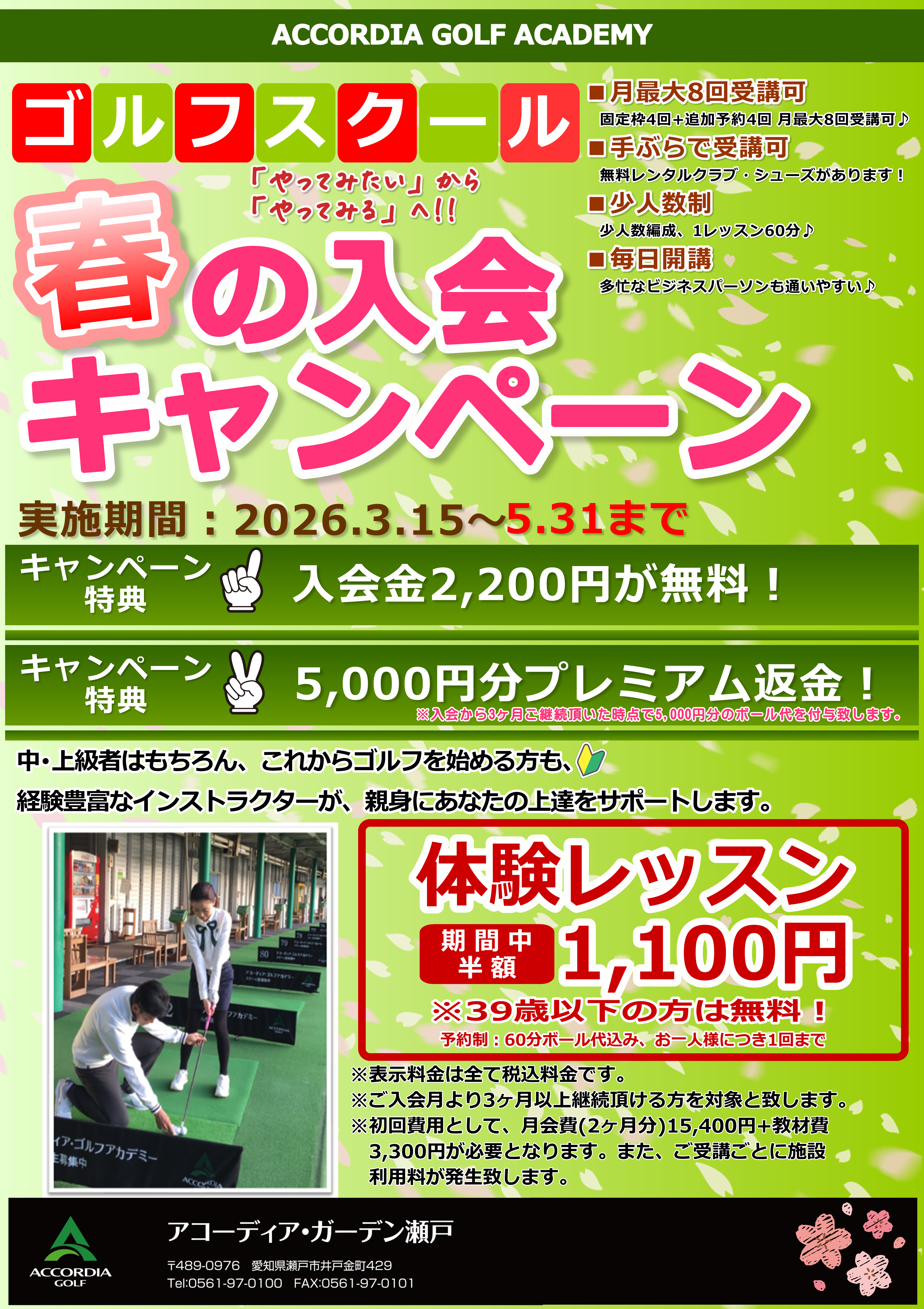 キャンペーン中にご入会頂くと、入会金2,200円が無料&5,000円分のボール代をプレゼント♪