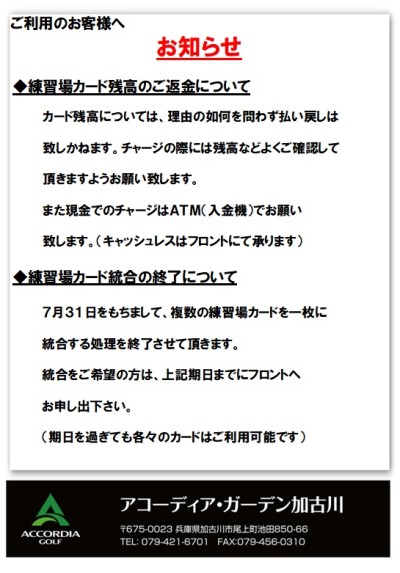 ◆練習場カード統合の終了について
