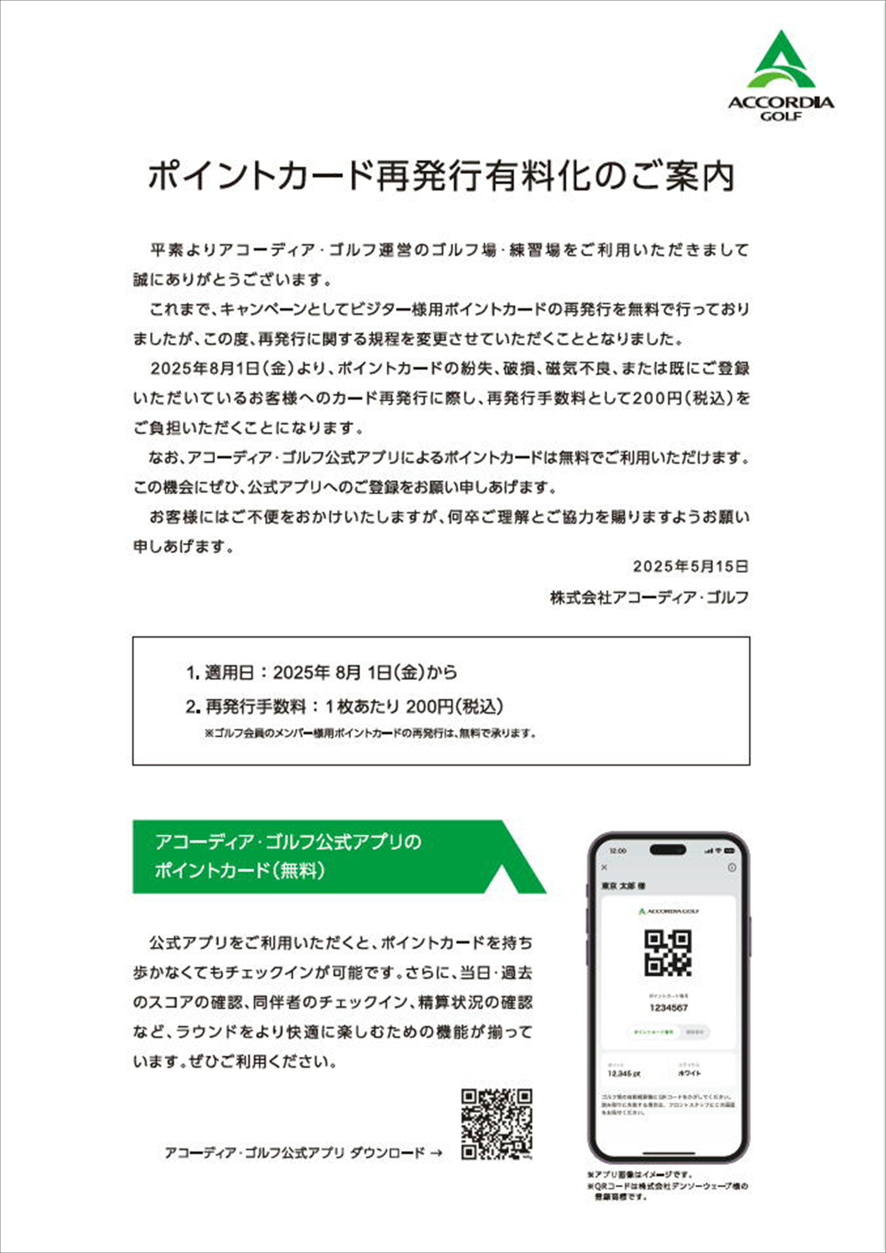 なお、アコーディア・ゴルフ公式アプリによるポイントカードは無料でご利用いただけます。
