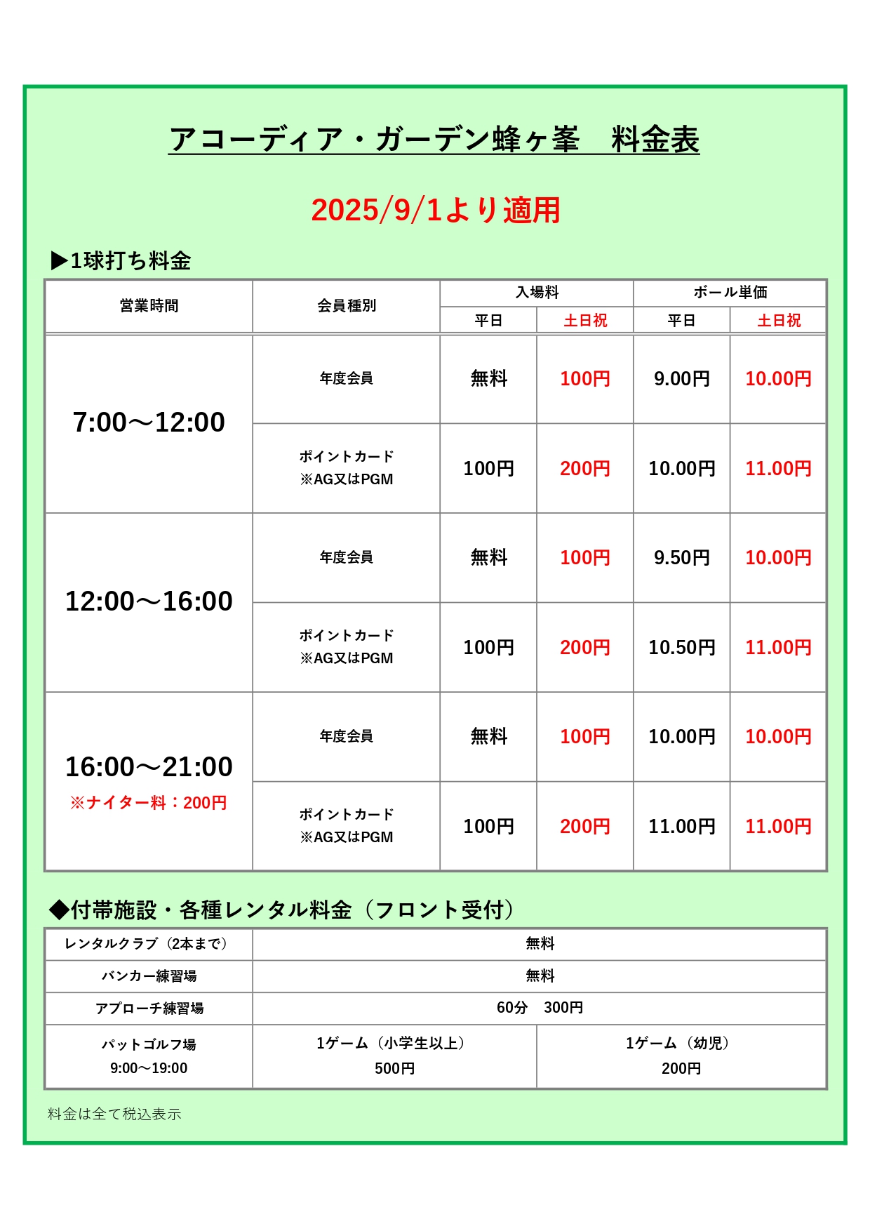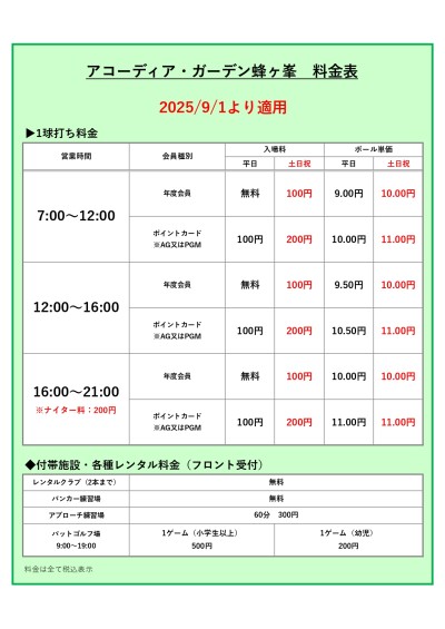 9月1日より大変心苦しいですが、諸般の事情により料金の改定を行うこととなりました。