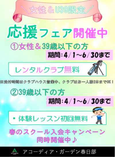 レンタルクラブ無料(女性&39歳以下の方限定)