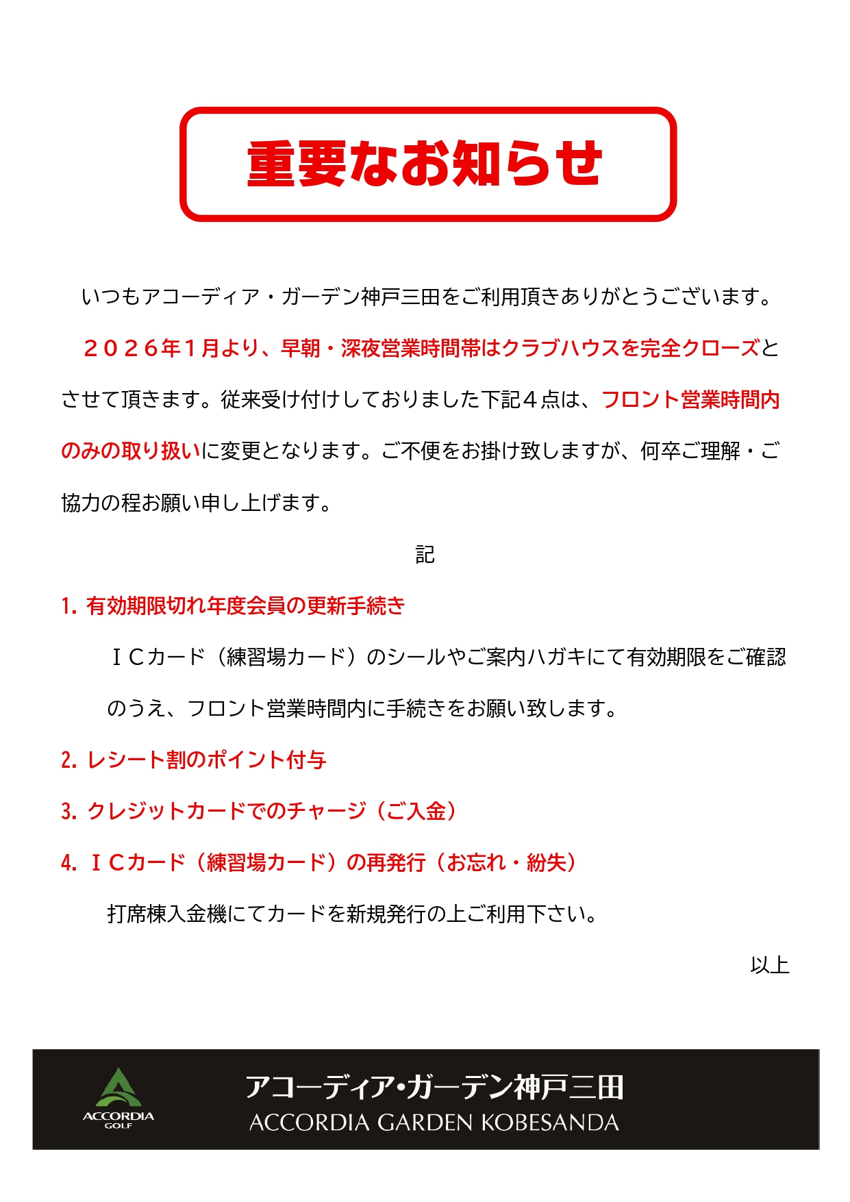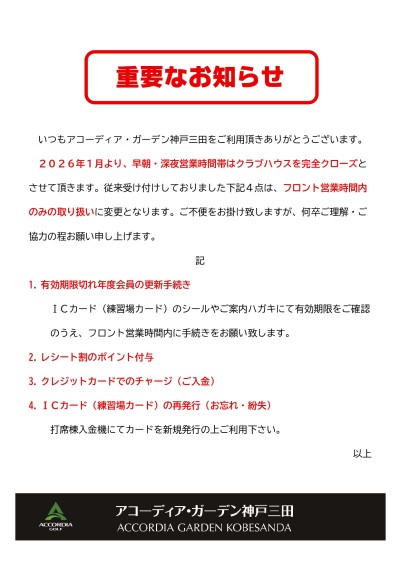 2026年1月より、早朝深夜時間帯はクラブハウスを完全クローズとさせて頂きます!