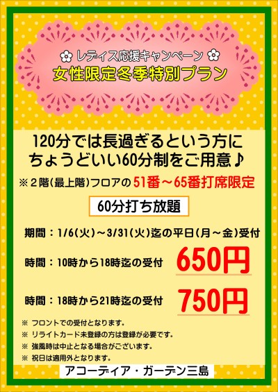 女性限定1月6日(火)~3月31日(火)迄