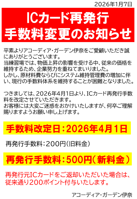 当練習場では、物価上昇の影響を受ける中、従来の価格を維持するため、企業努力を重ねてまいりました。しかし、原材料費ならびにシステム維持管理費の増加に伴い、現行の手数料体系を維持することが困難となりました。