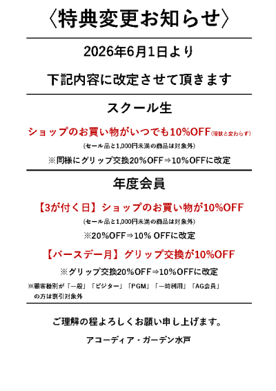 2026年6月1日より、スクール生・年度会員の特典を変更します。