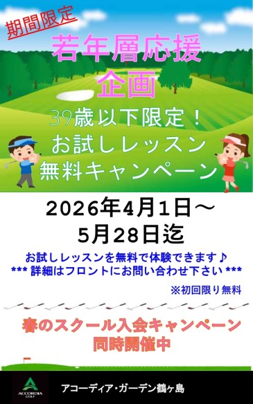 39歳以下限定!お試しレッスン無料キャンペーンを実施いたします!