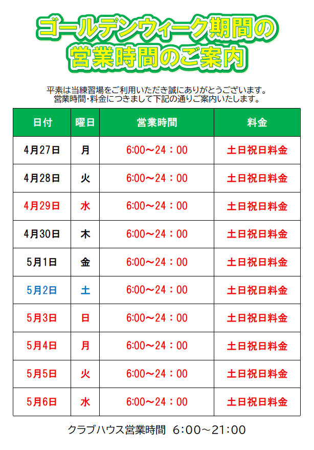 平素は当練習場をご利用いただき誠にありがとうございます。