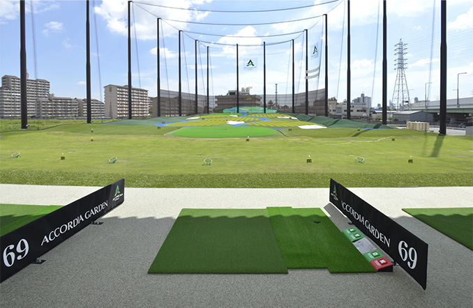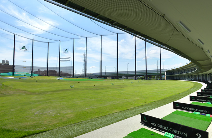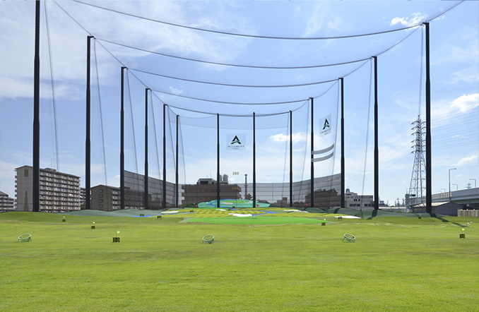 1、2階88打席、パッティンググリーン、個室打席完備。手前50ヤードは天然芝でアプローチの練習に最適、ターゲットグリーンも7面あり、様々な長さのショートホールの練習にも抜群。奥行きはドライバーの練習にも十分な230ヤードの広々としたフィールドを兼ねそろえています。