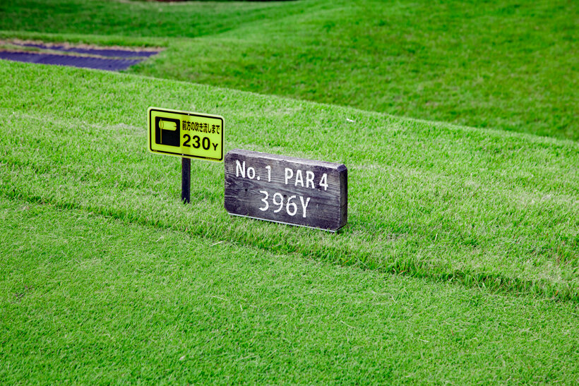 一般的にティーイングエリアから1打目のランディングエリアに対して垂直にティーマークを設置する。ティーイングエリアに立った時に「少し右を向いているな」と感じたり、実際に右や左を向いていることがある。これはプレーヤーを錯覚させるものかと思いがちだが、実はそういったトラップは仕掛けられていないそう。多少左右に方向がズレていることもあるが、個人の感覚の違いによって生じるようだ。