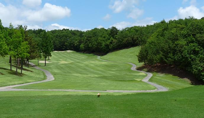 春はコース内5,000本の桜が美しく、自然と調和したレイアウトの丘陵林間コース。